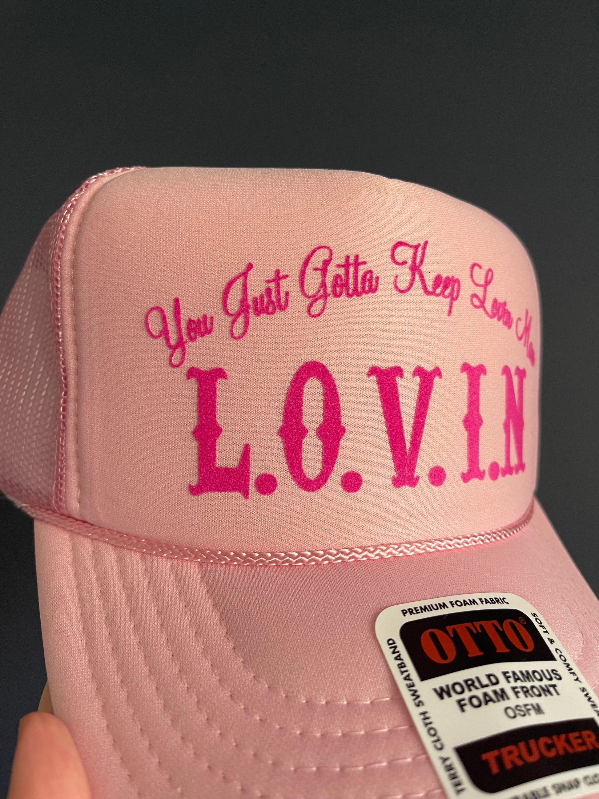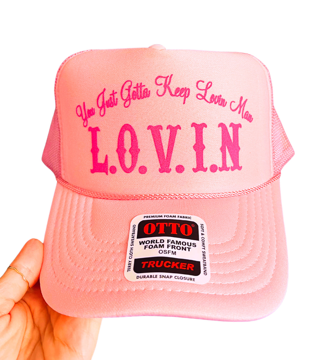 Pink Otto hat with velvet pink lettering